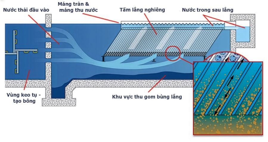 Bể lắng ngang loại bỏ các chất rắn lơ lửng có trong nước thải
