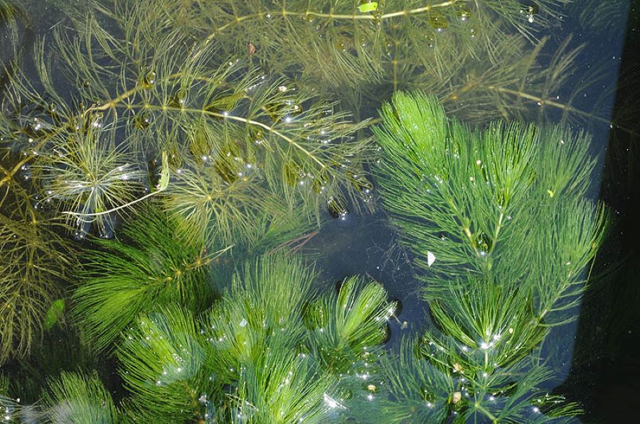 Nhóm này bao gồm các loài có thân và lá hoàn toàn ngập trong nước như rong đuôi chó, thủy cúc, hoặc rong la hán. Chúng đóng vai trò quan trọng trong việc cung cấp oxy hòa tan cho môi trường nước, tạo nơi cư trú cho sinh vật nhỏ và góp phần duy trì độ trong của nước.